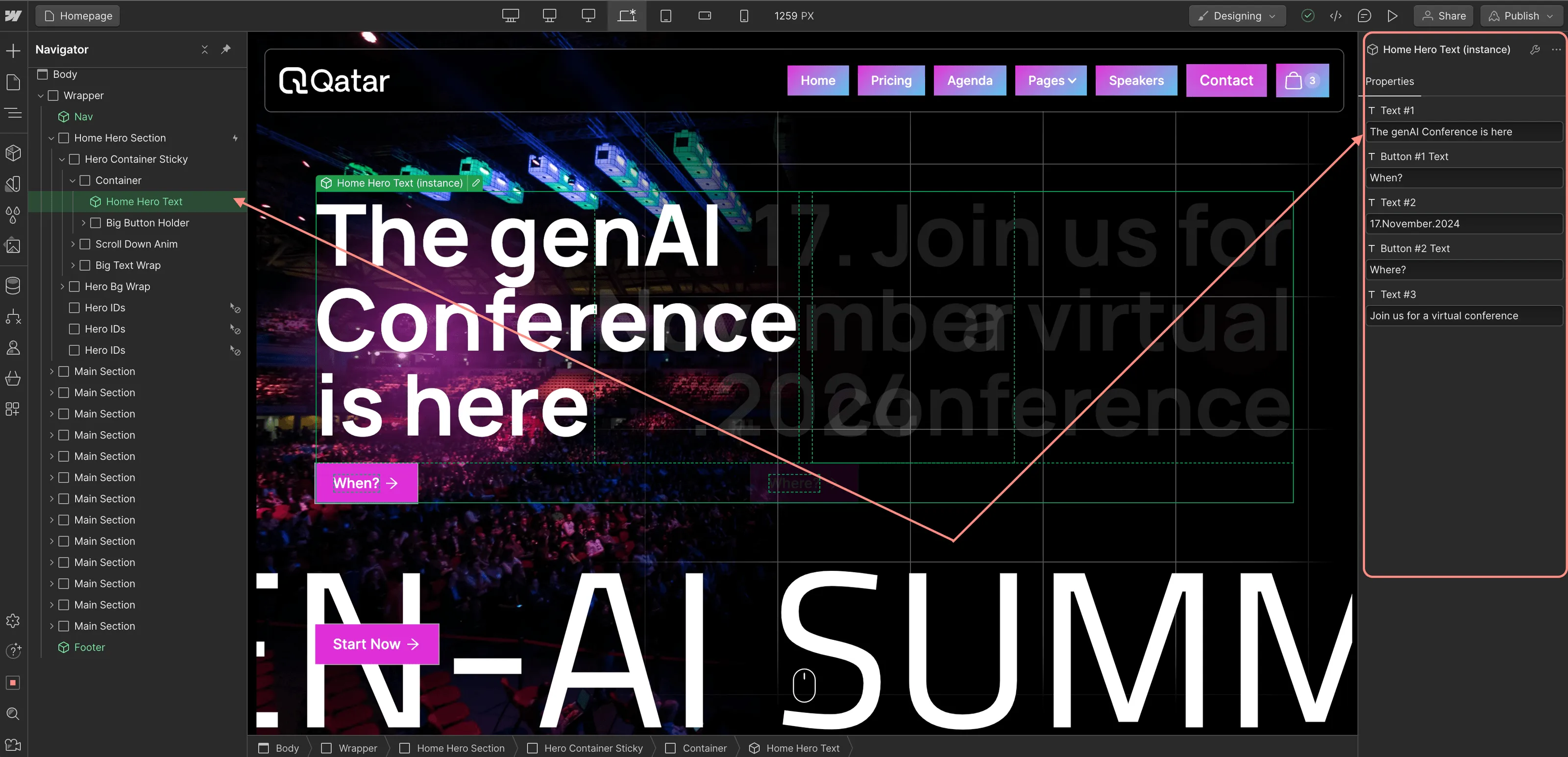 2. Update Heading Texts and Button texts (#1, #2, #3)